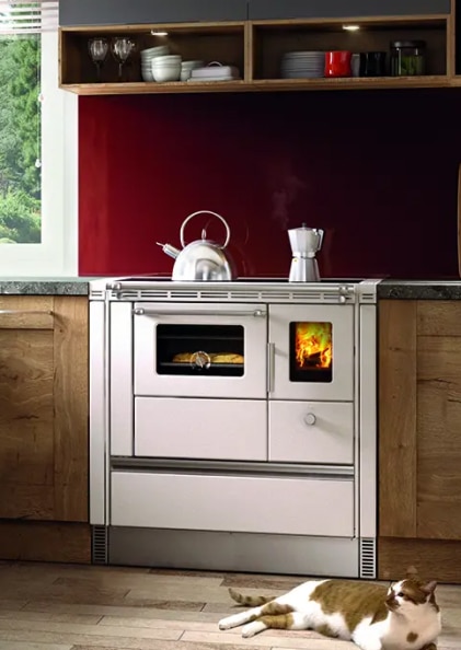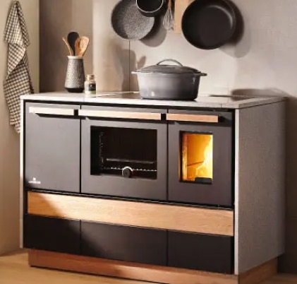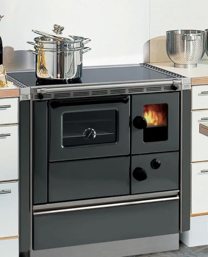 Vous cherchiez une cuisinière ? Vous avez trouvé un chauffage central ! C’est la cuisinière à chauffage central de dernière génération. Elle peut faire cuire, frire, bouillir de l’eau et chauffer toute la maison, puisqu’elle peut s’accorder directement au circuit d’eau. Encore mieux, grâce à elle, vous économisez de l’électricité et réduisez vos coûts énergétiques. Pour faire court, votre cuisinière est un véritable tout en un !